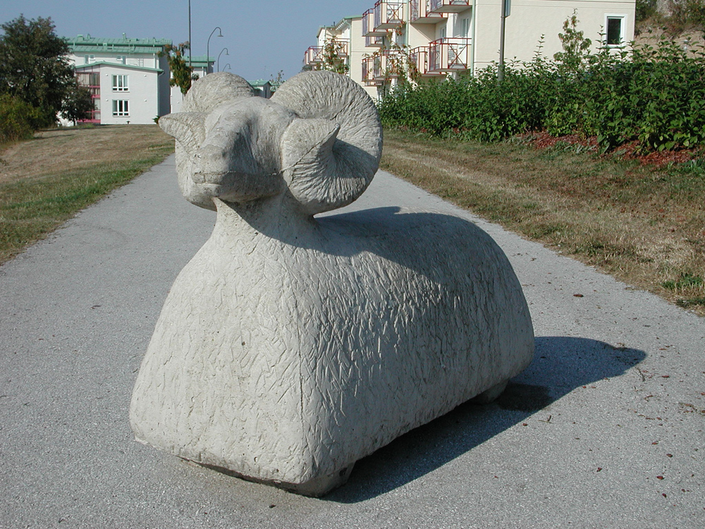 Description with Petter Duvander’s photo: “Concrete pig, with a twist …thingys that are supposed to be disturbing traffic are called concrete pigs in Swedish. On our largest island, Gotland, rams are kind of mascots, so of course their pigs are rams instead.”