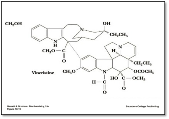 - Vincristine: cancer chemotherapy drug; basic info: http://en.wikipedia.org/wiki/Vincristine.