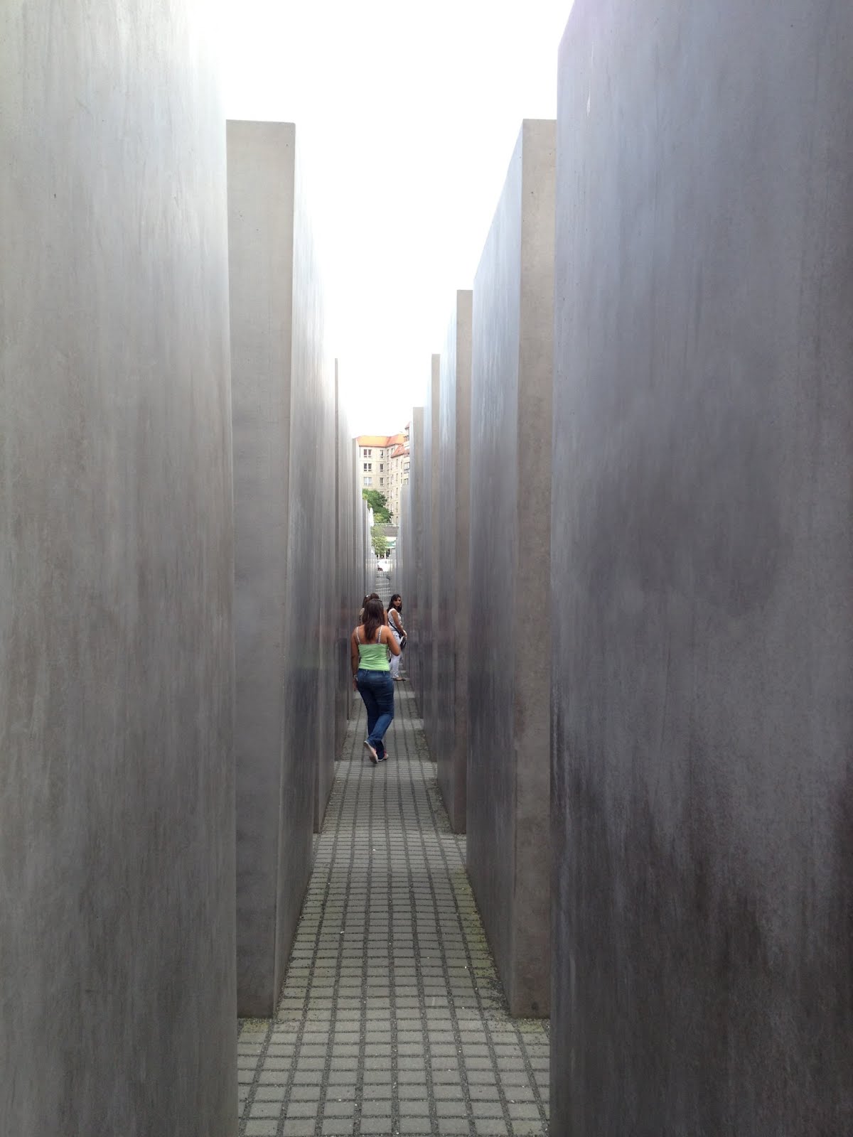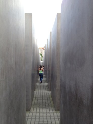 I was reminded recently of my conversation with my former student when I visited the Memorial to the Murdered Jews of Europe in Berlin. The memorial was wonderfully done. I began walking through it and quickly lost track of my traveling companions. I walked up and down the hilly stone ground, hands outstretched, lightly brushing both sides of the grave-like pillars to either side of me. Everything else disappeared as I walked for a while, turned, and walked down another row of pillars. The pillars pulled me slowly, graciously out of intellectual conversations from the moments before and into a steady stream of tears.