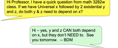 At the Fall 2013 Academy of Distinguished Teachers Conference, Mosher describe a recent pilot he conducted to see if cell phones could be used to encourage interaction between students and teacher during class sessions. Mosher reports taking on complications in converting keyboard characters to mathematical operations, and in making use of the strategy to help students “transition from carrying out algorithms to constructing arguments and independent mathematical expression.” The program was a success and resulted in additional opportunities to clarify things students found confusing.