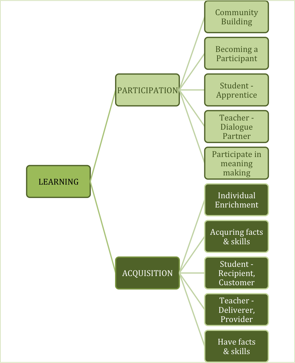 Generated in his work with colleagues on a research inquiry focusing on the learning society, Coffield’s analysis of learning does map onto two branches:
