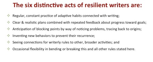 Cleo’s words, my student writing experiences before PhD school, and my teaching practices since working with Cleo in 1986 have combined to convince me that writers who are invited to – even charged to – seek real feedback from their readers actually do make significant revisions in that space between reviewing comments and turning in final polished work. When students provide their own feedback questions – whether about a piece of writing, a presentation, a performance, a work of art, or a teaching/learning artifact in process – and are expected to account for how they could or did make use of the feedback, the final work demonstrates revision that goes far beyond correcting red-penciled surface features in an act of revision-by-proofreading.