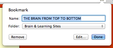 You likely know your own Firefox or Internet Explorer or Safari or Chrome bookmarking menu well. Click on the appropriate dropdown menu when you want bookmark a page, then use the dialog box that opens to modify the document name, select a folder where it will live, and type in an appropriate tag as a last thing before clicking “Done.” And the link now lives on that computer with a bit of brief information.