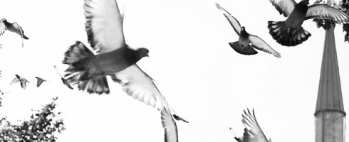 Pigeons in flight photo by Danko Dubric; used via Creative Commons ShareAlike/Attribution License.