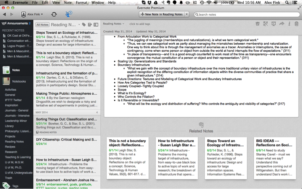 Image: See “Related Notes” section of Evernote for an example of software that alerts you to connections across areas of knowledge.